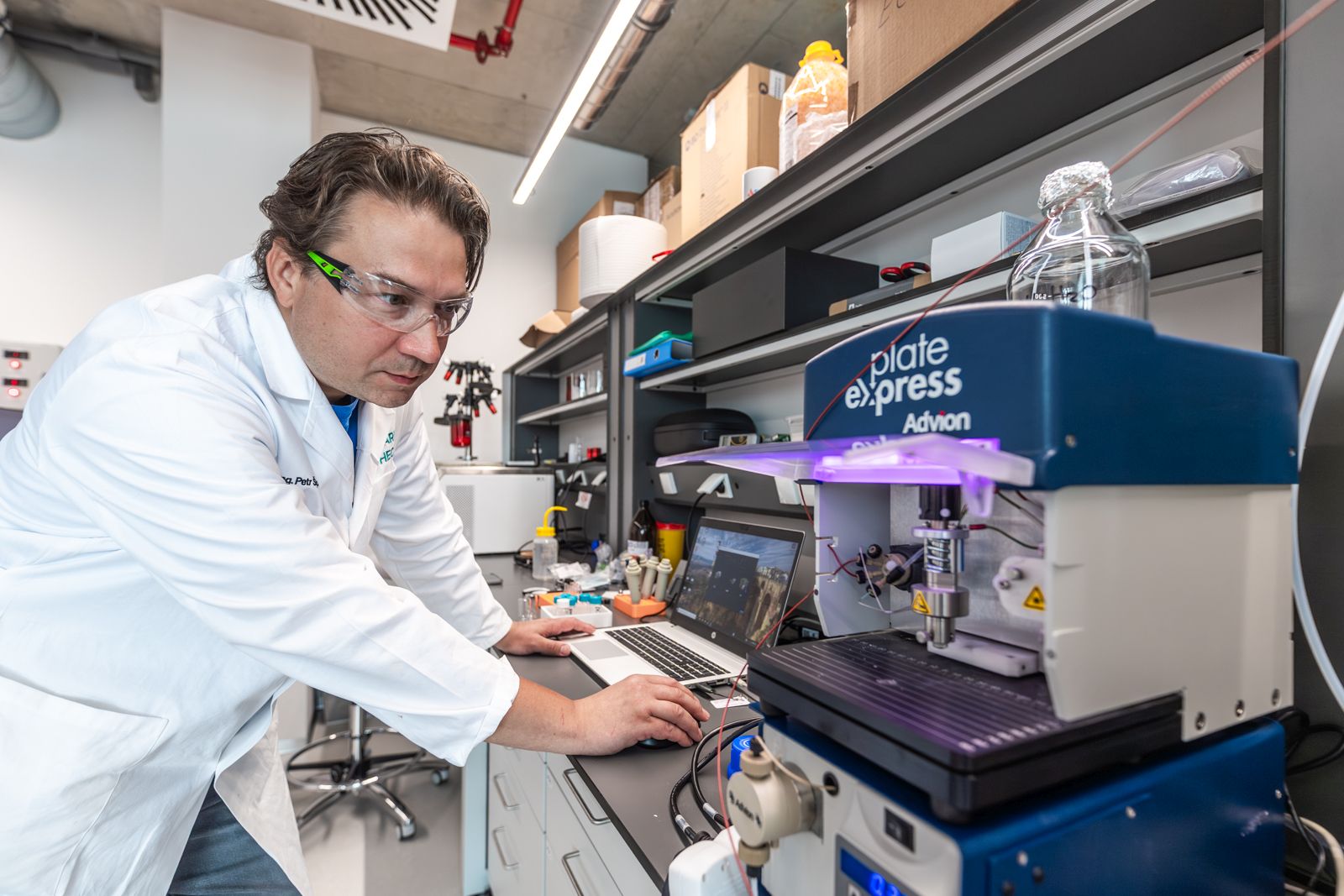 V PharmTheonu působí juniorní i seniorní výzkumníci se zkušenostmi z akademického prostředí i z biotechnologických společností, což zajišťuje vyváženou kombinaci vědecké expertizy a praktické aplikační praxe. Na snímku medicinální chemik Peter Urbanovský.