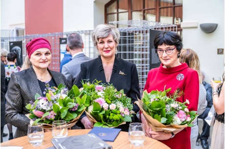 Vernisáž zahájily (zleva): Markéta Pravdová, Věra Kovářová a Eva Zažímalová. (CC)