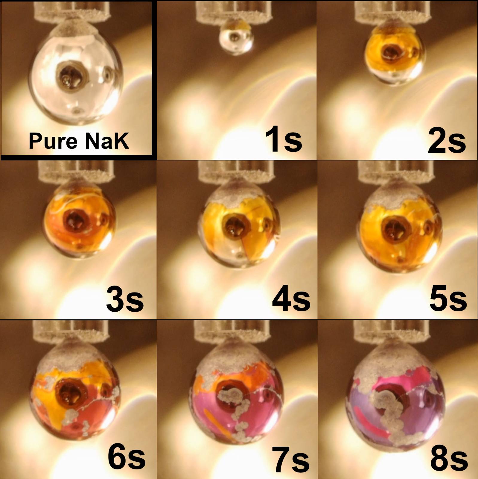 Uvnitř vakuové komory vystavili vědci kapku slitiny sodíku a draslíku malému množství vodní páry, která začala kondenzovat na jejím povrchu. Tímto postupem se elektrony uvolňované z alkalického kovu rozpouštěly do vrstvičky vody na jejím povrchu rychleji, než probíhá chemická reakce vedoucí k explozi. Jejich množství přitom bylo dostatečné k překonání kritické hranice pro vytvoření vodivostního pásu, a tedy vytvoření kovového vodného roztoku, který kromě těchto elektronů obsahoval i rozpuštěné alkalické kationty a chemicky vytvořený hydroxid a vodík.