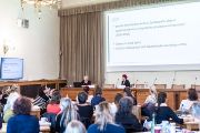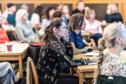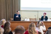 Markéta Pravdová z Ústavu pro jazyk český AV ČR zahájila Školu českého jazyka a literatury a přivítala více než šest desítek účastníků.