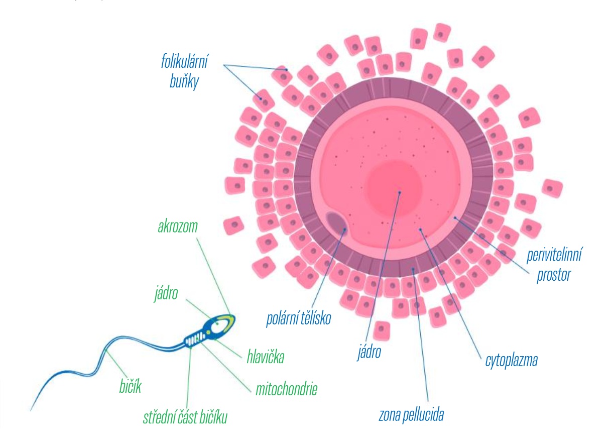 Schéma s jednotlivými částmi spermie a vajíčka (CC)